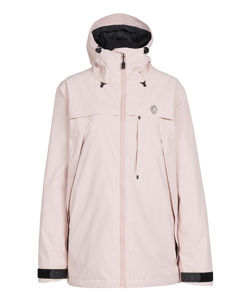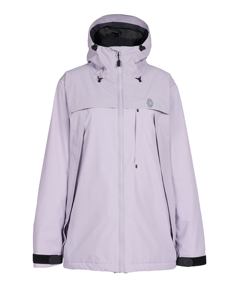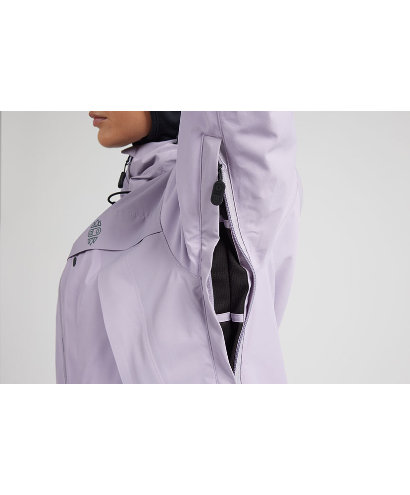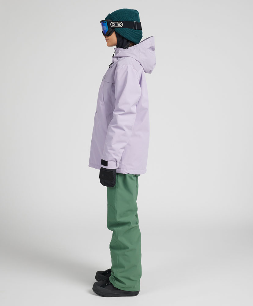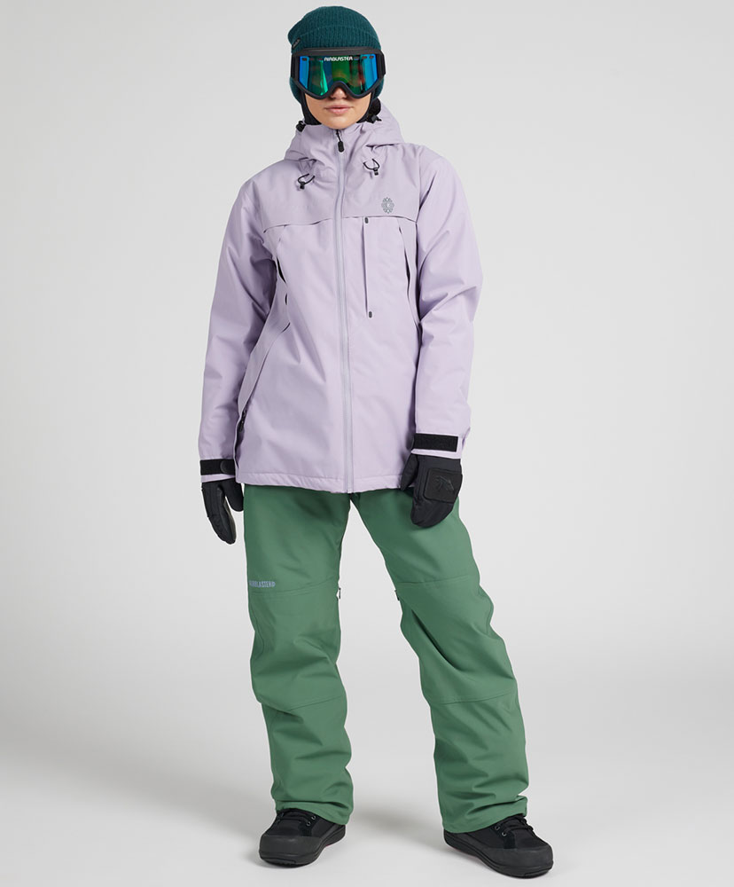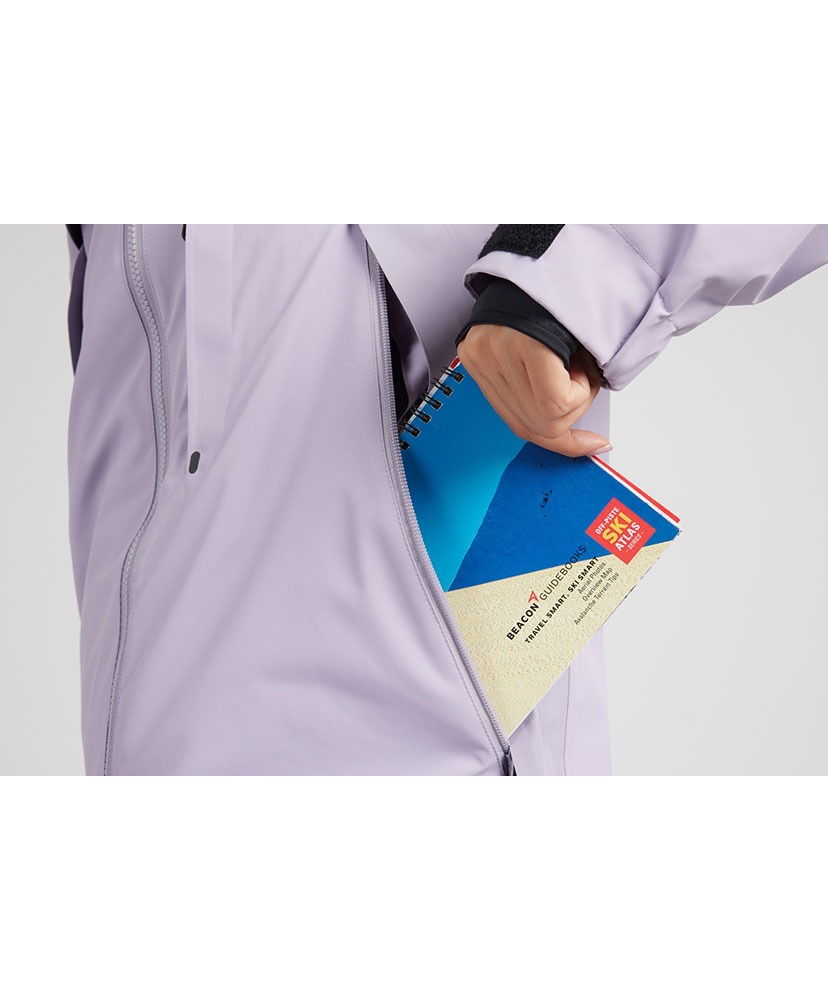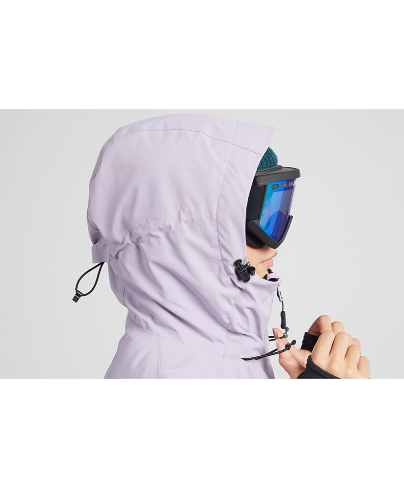 パタゴニアで最もテクニカルなレディス・ジャケットは、30,000ミリメートル防水加工を施した生地の下に、100%リサイクル・インサレーションを