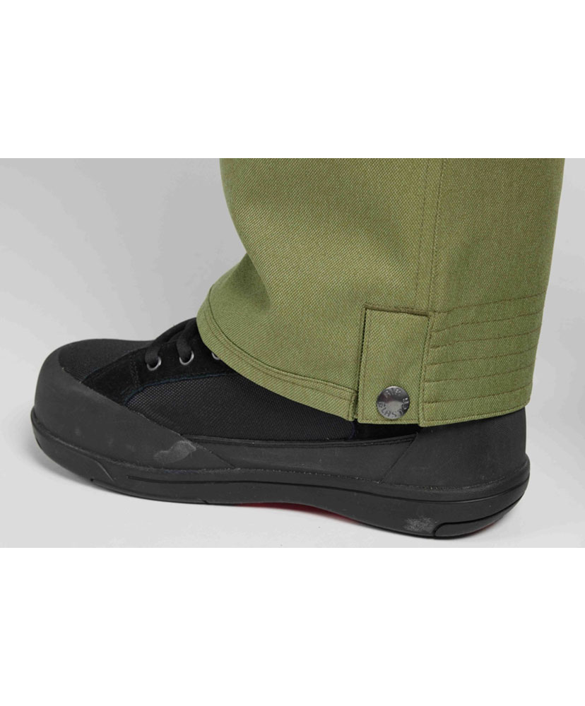 ・ サイドウエストはクラシックなボタン留め