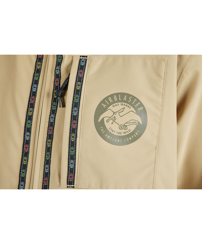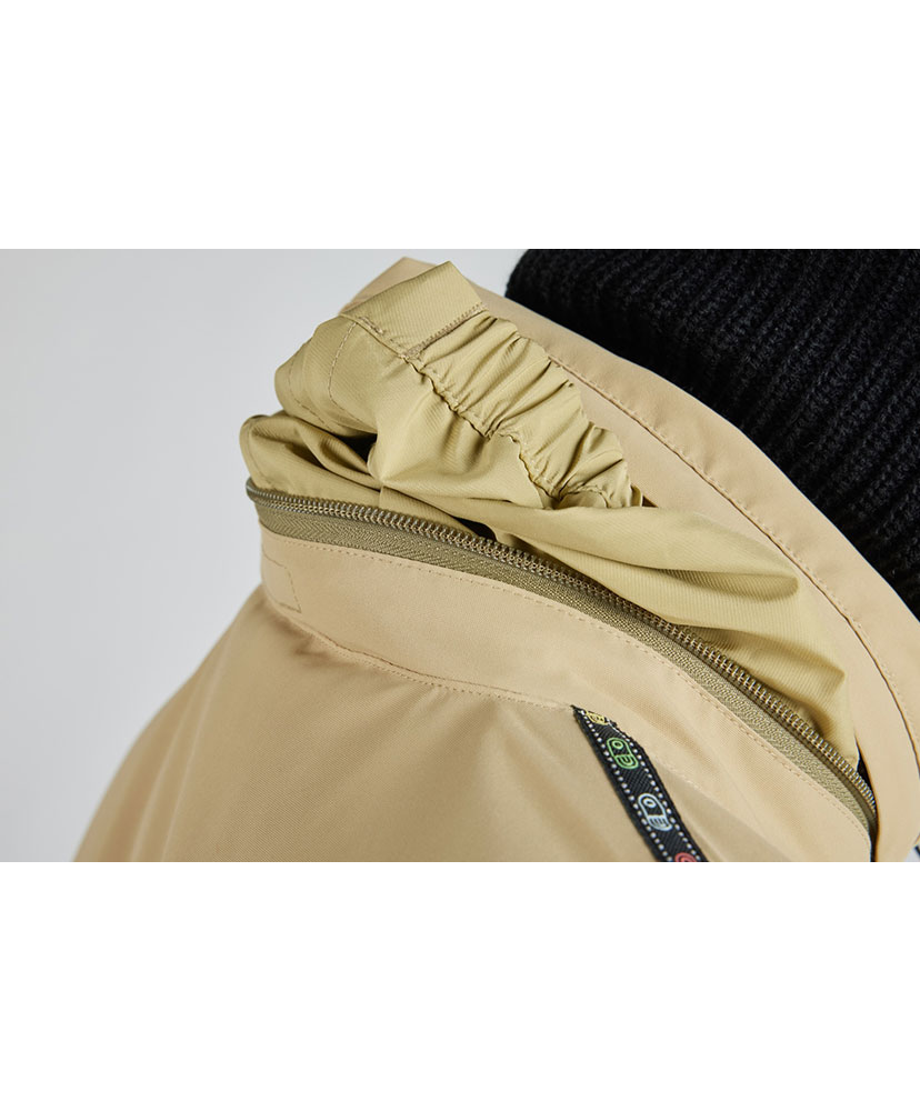 パッカブル・フードは、襟の内側にある安全なジッパー付きポーチから数秒で展開。エアピルジャカード・テープと、胸ポケットのテリー・ワーブスの