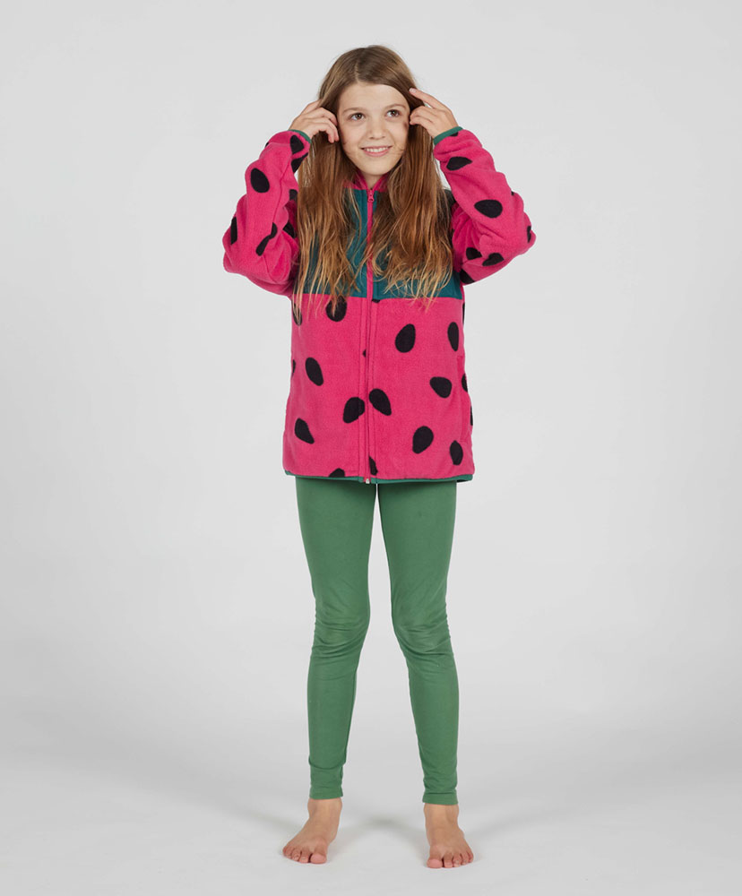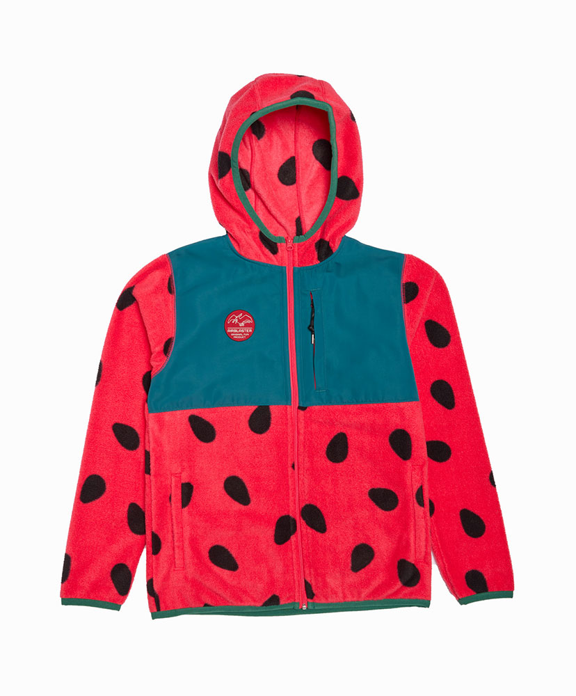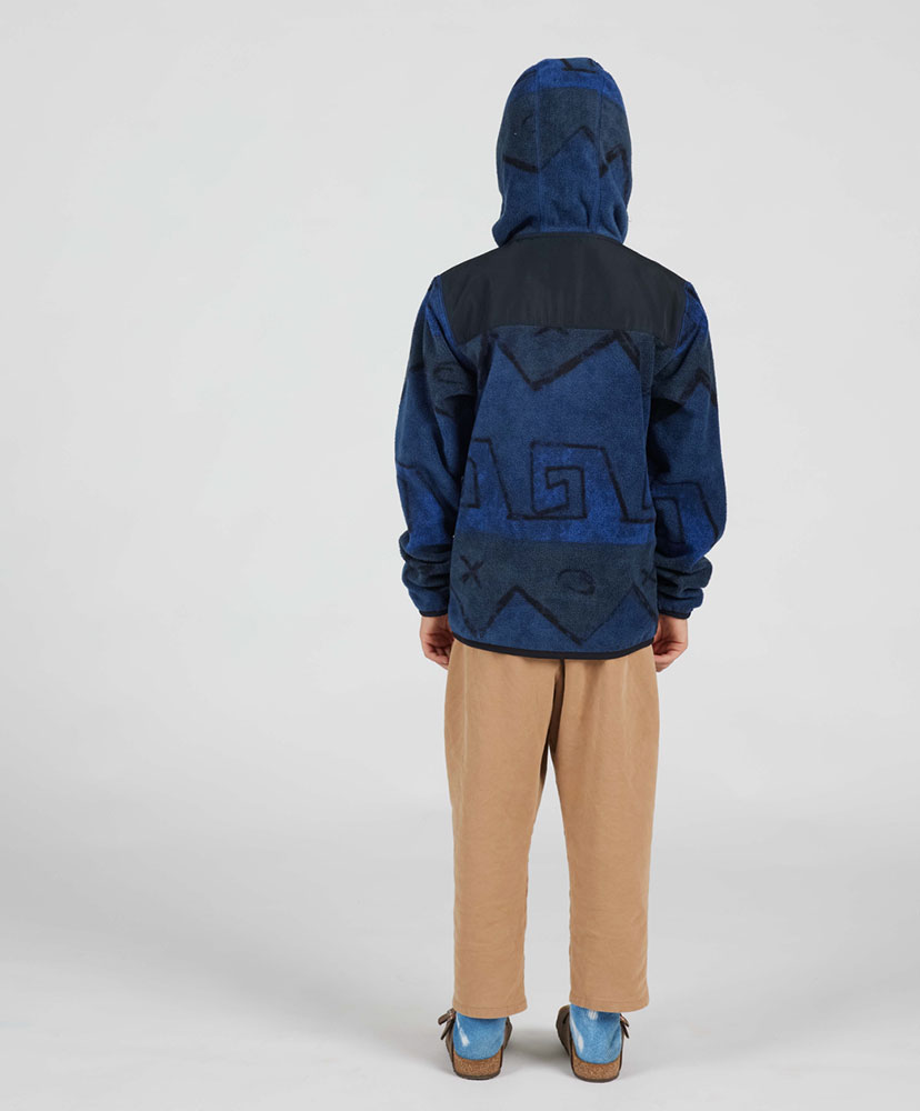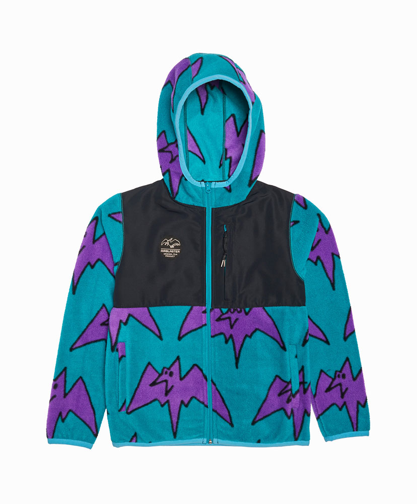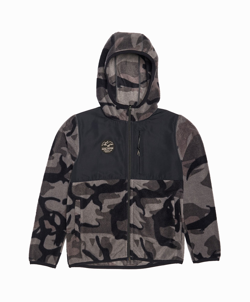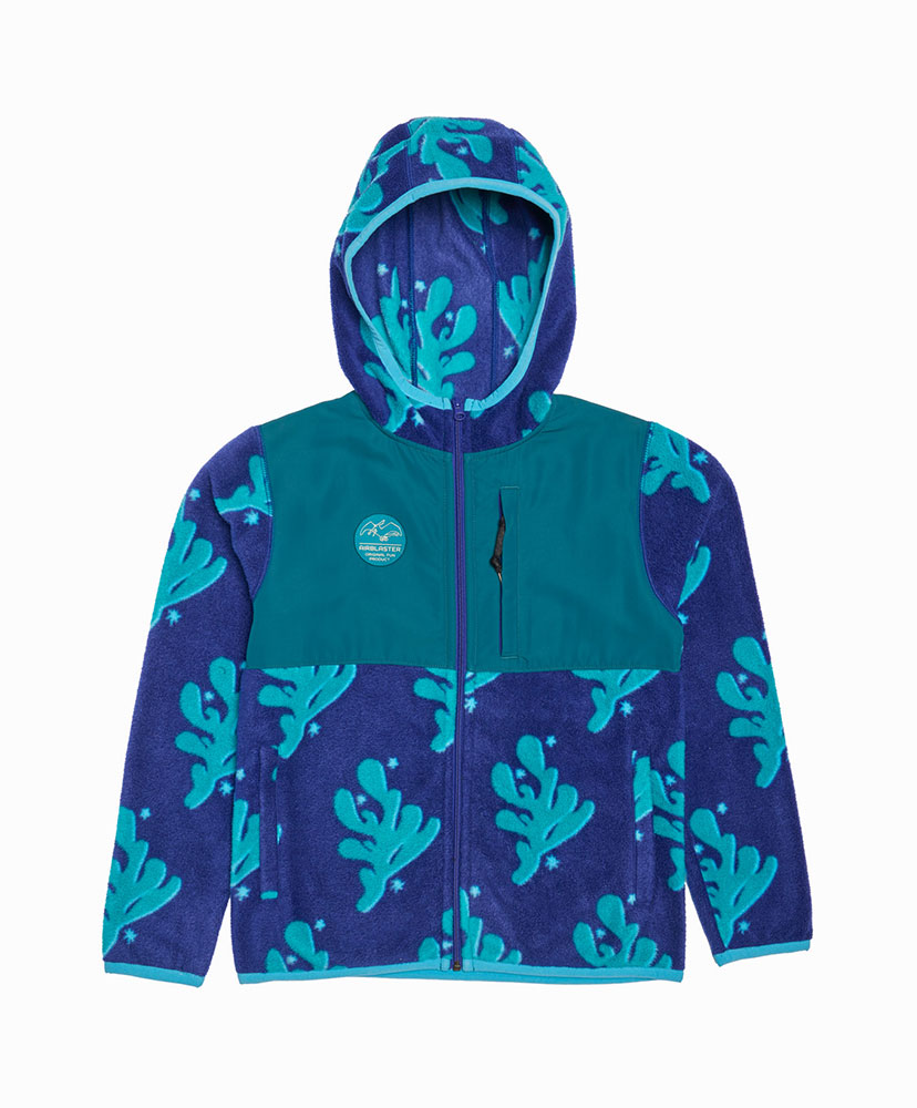 素晴らしいプリント、肌触りの良い280gのフリース、胸と肩にはPFCフリーのDWR(耐久性撥水)加工を施した遮風シェルを使用し、