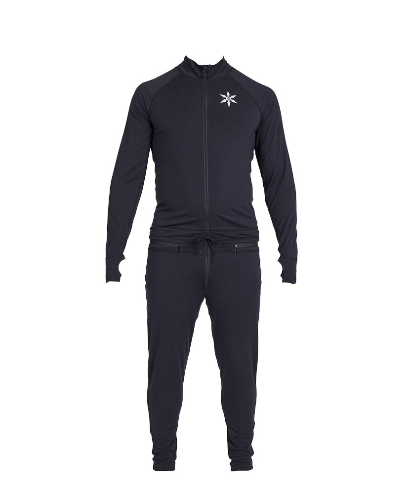 フードレス・ニンジャスーツはあなたのためのベースレイヤーです。ぜひジッパーを閉めれば、上半身をすっぽりと覆い隠すことができる。